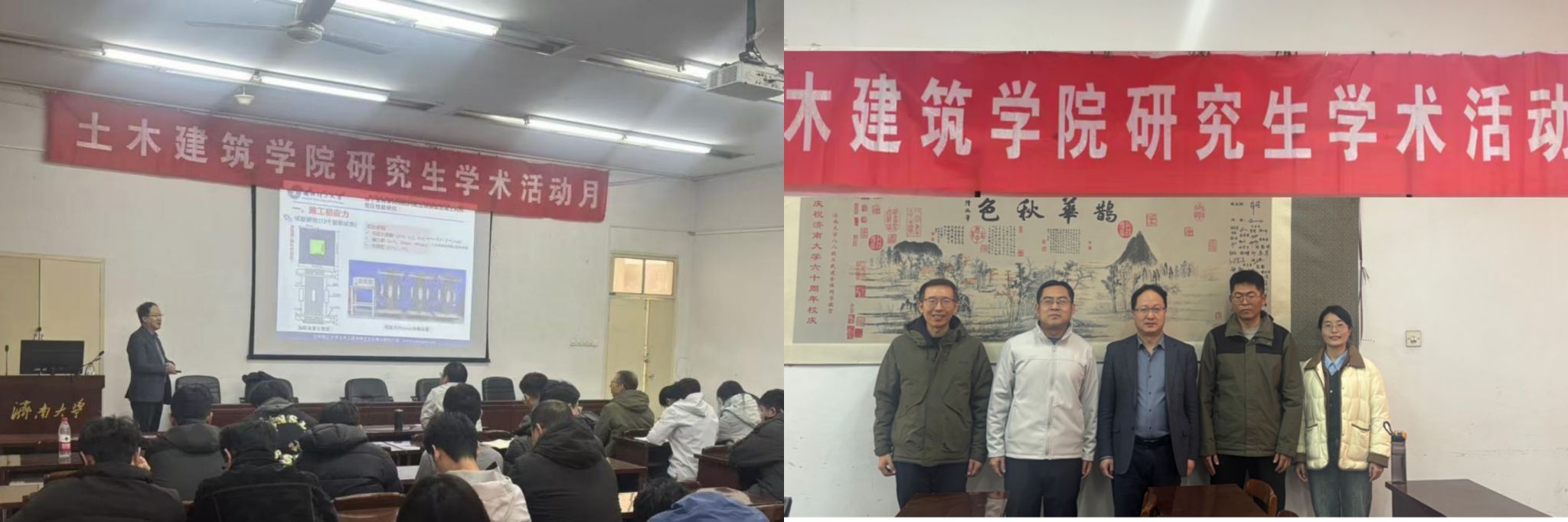 2025年11月22日,我院特邀兰州理工大学教授王文达作了题为《内配型钢钢管混凝土组合构件力学性能》的学术报告。报告由学院院长谢群主持,我院相关专业师生参加了报告会。