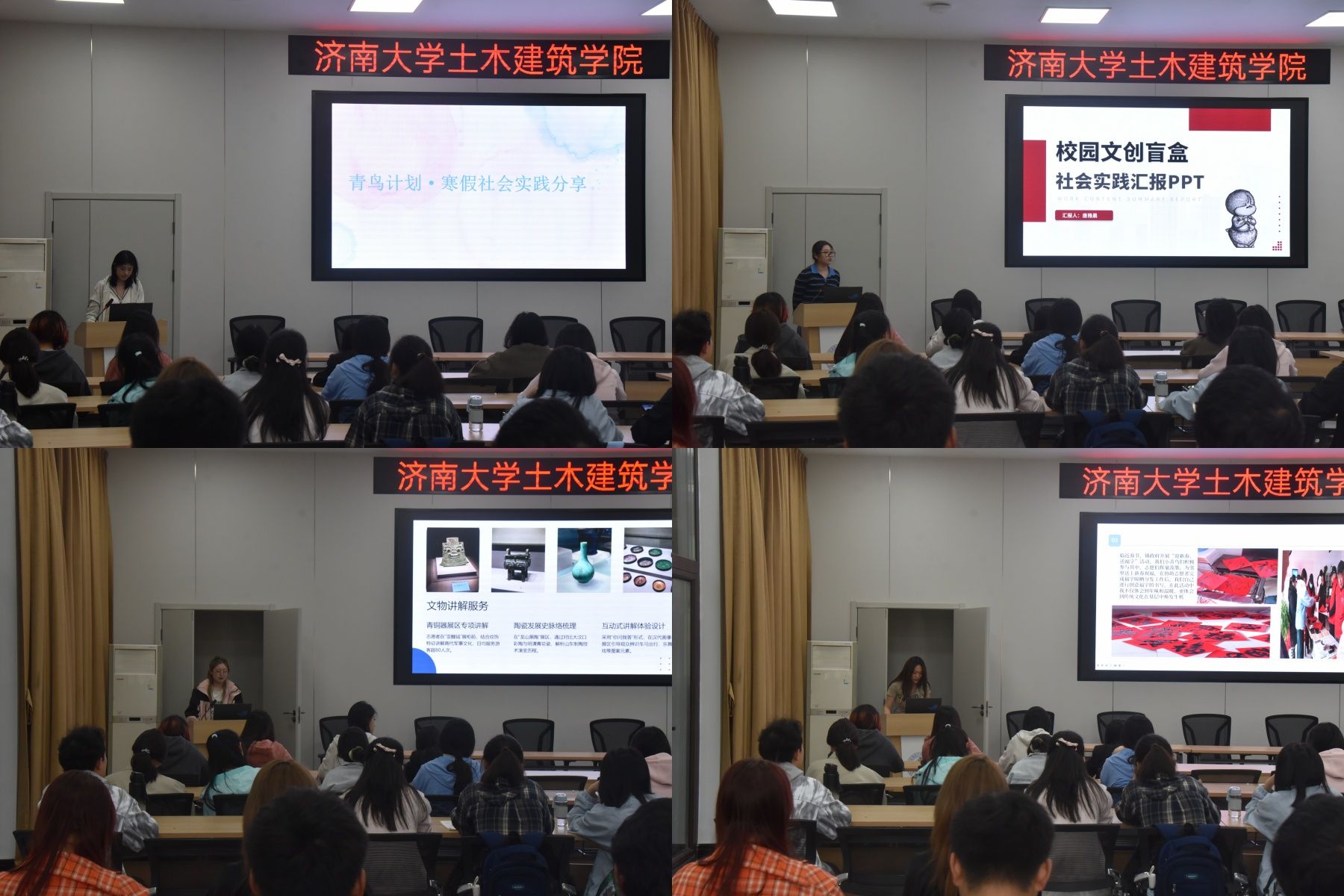 活动伊始,团总支社会实践部负责人围绕寒假实践整体推进情况、“青鸟计划”实施成效及后续实践工作安排作详细汇报。分享环节,活动邀请五位优秀学生代表依次上台交流实践感悟。董家畅同学聚焦社区志愿服务,在甸柳第四社区累计服务时长超100小时,开展为老探访、禁燃禁放宣传、防诈骗科普讲座、社区治理协助等工作,用暖心服务传递青年温度;李阳同学在山东省博物馆承担文物讲解、文化宣传、展厅引导等志愿服务工作,在传承齐鲁文化、服务观众游客的过程中提升专业素养与服务能力;赵梦如同学通过“青鸟计划”进入乡镇政府实习,参与档案整理、希望小屋帮扶、新春送福、学子看家乡等活动,深刻体会基层工作的责任与价值;唐雅晨同学立足校园特色开展文创实践,完成校园盲盒原创设计、市场调研与产品验证等工作,以创新思维推动校园文化与文创产业融合发展;车子涵同学通过“青鸟计划”在商河县妇联实践,参与关爱儿童、公益宣传与政务辅助等工作,在奉献中提升自我、践行青春担当。五位同学用真实经历、鲜活案例和真挚感悟,生动诠释了社会实践的深刻意义,为在场同学提供了宝贵的实践参考。活动最后,团委书记孙晓爽老师对此次寒假社会实践活动进行简要总结,并鼓励大家珍惜实践机会,在实干中提升本领,在奉献中实现价值,以青春之力践行时代担当。