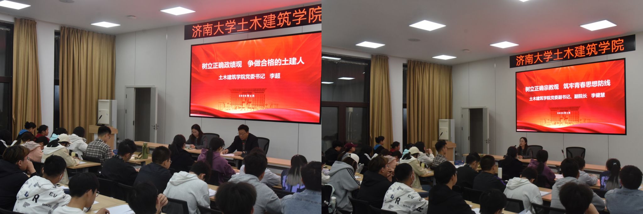 李超以《树立和践行正确政绩观,争做合格的土建人》为题授课,如何把握正确政绩观这一核心要义,他鼓励在座的每一位学子将个人成长融入国家建设和行业的发展之中,以务实作风深耕专业领域,锤炼过硬本领;立足岗位担当,坚守工程质量底线,以专业所长服务民生,贡献社会。
