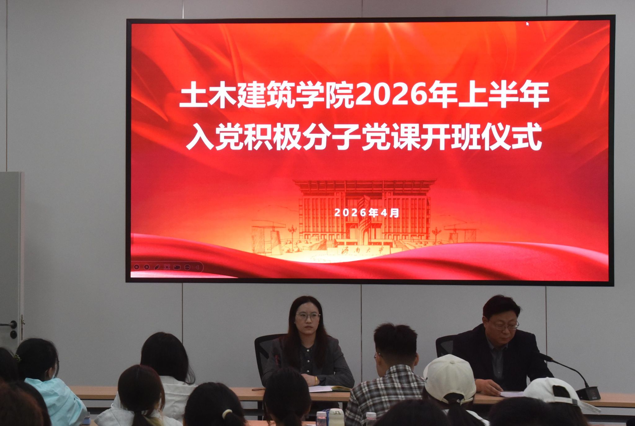 为深入学习贯彻党的创新理论,加强化入党积极分子思想淬炼、党性锤炼,严把党员发展“入口关”,4月10日,我院2026年第一期入党积极分子党课开班仪式如期举行。学院党委书记李超,党委副书记、副院长李健慧出席仪式并分别讲授党课,本学期新确定的入党积极分子全部参加会议,仪式由辅导员孙燕主持。